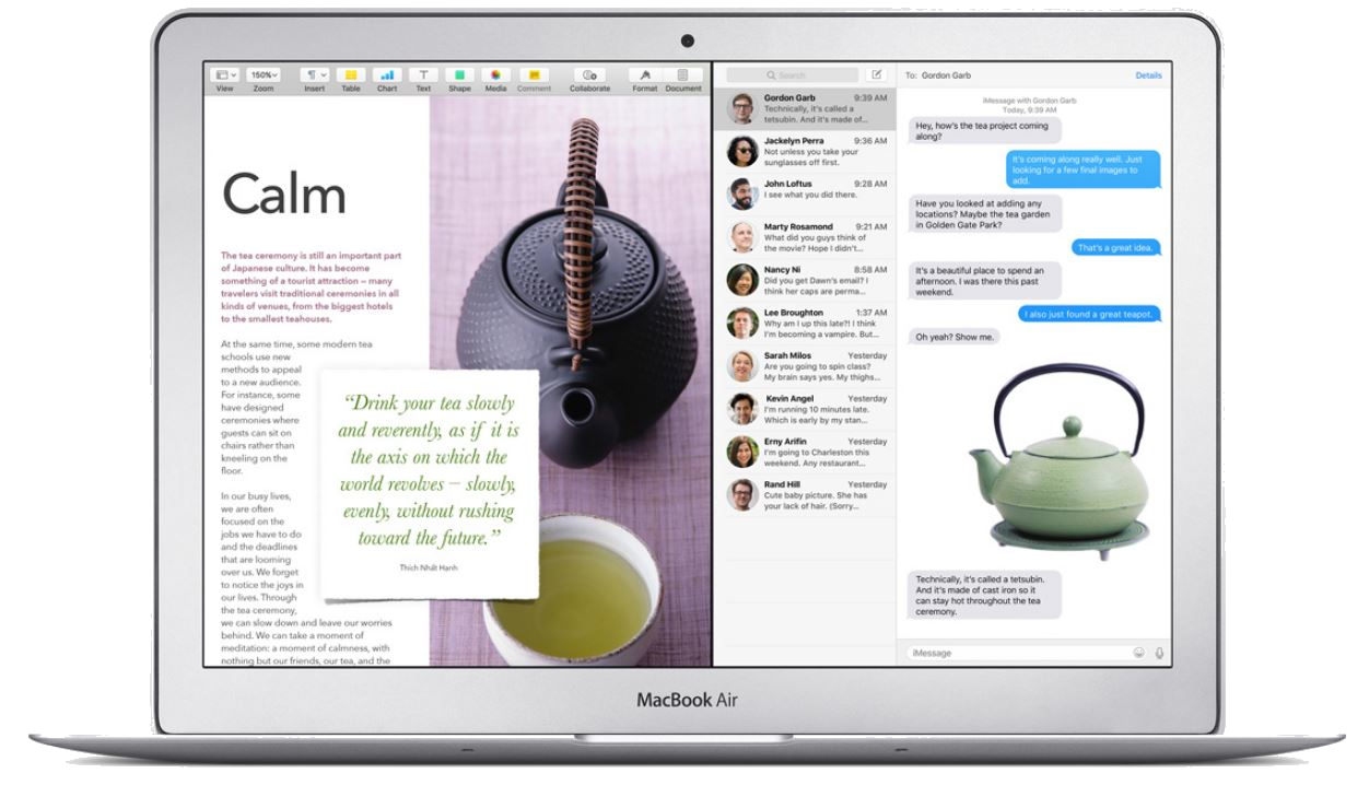 SSD úložiště MacBooku Air je až sedmnáctkrát rychlejší než notebookové pevné disky s rychlostí 5400 ot./min. Takže všechno okamžitě reaguje. Díky SSD úložišti a procesorům Intel Core páté generace se MacBook Air i rychle probouzí.