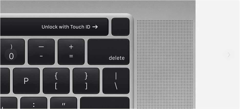 16palcový MacBook Pro posouvá pracovní efektivitu na novou úroveň. Nová klávesnice Magic Keyboard má zdokonalený nůžkový mechanismus se zdvihem 1 mm pro pohodlné a tiché psaní s přesnou odezvou. Na Touch Baru máš po ruce šikovné zkratky a Touch ID umožňuje rychlé ověřování uživatele. Fyzická klávesa Escape přijde vhod při rychlém přepínání mezi režimy a zobrazeními. A šipky uspořádané do obráceného T umožňují plynulou navigaci, ať projíždíš řádky kódu, procházíš tabulky, nebo hraješ hry.