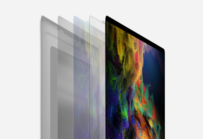Zdokonalený zrcadlový list v sestavě podsvícení odráží víc než 98 procent světla. MacBook Pro díky tomu efektivně dosahuje jasu 500 nitů.