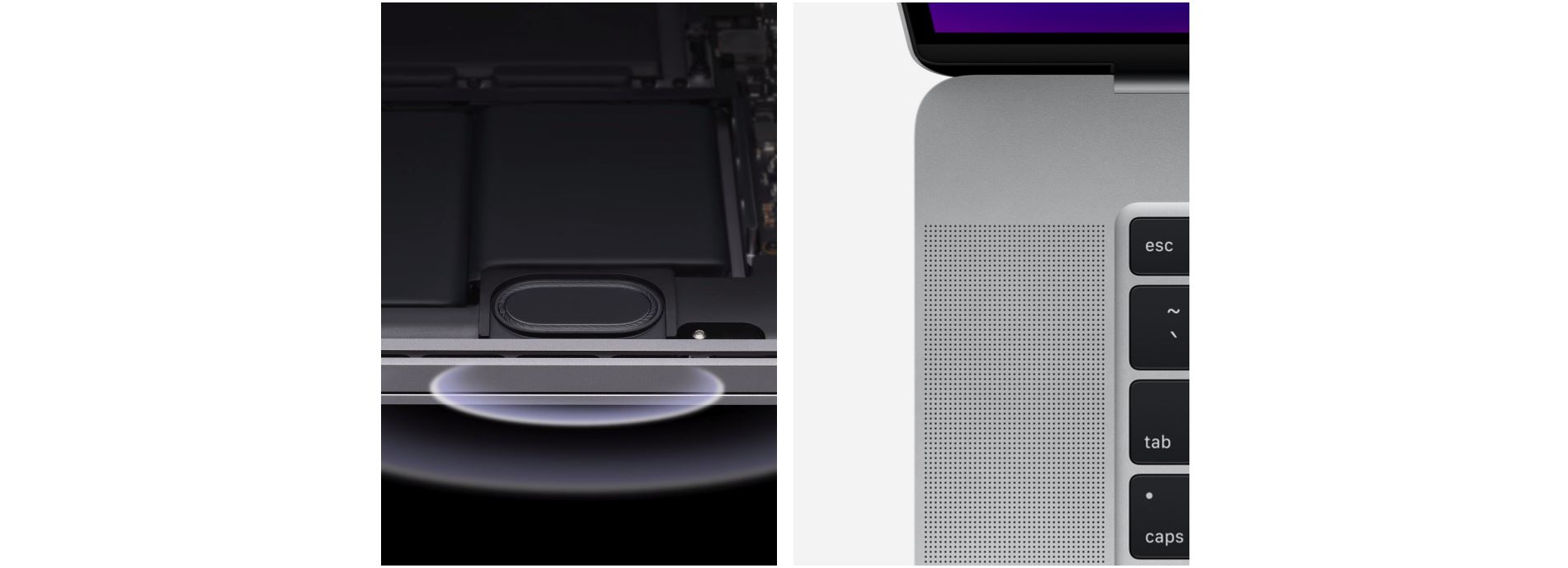 MacBook Pro má pořádný zvuk. Systém šesti reproduktorů vytváří mohutný stereo zvuk, který zaplní celou místnost. Takhle nezní žádný notebook. Dvojité woofery v antirezonančním uspořádání zásadně omezují vibrace. Mají čistší, přirozenější zvuk a o půl oktávy hlubší basy. Soustava tří mikrofonů studiové kvality si nezadá s profesionálními mikrofony jiných výrobců. Krásně tak můžeš nahrávat dokonale čisté podcasty nebo si na cestách zaznamenávat hudební nápady.