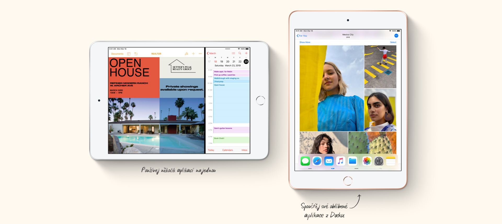 V iOS máš plnohodnotný zážitek z iPadu v nejkompaktnější formě. Můžeš pracovat s několika aplikacemi najednou, spouštět ty nejpoužívanější z Docku a přetahovat mezi nimi soubory jednoduchými Multi-Touch gesty. A všechny svoje věci máš pohromadě v aplikaci Soubory.