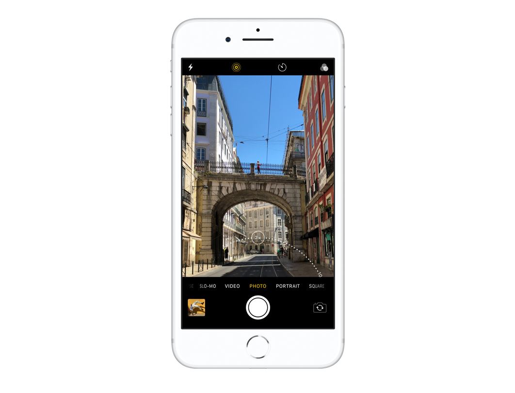 Fotoaparát iPhonu 8 Plus s širokoúhlým objektivem a teleobjektivem umí optický zoom. V kombinaci s digitálním zoomem dosahuje až 10× přiblížení fotek a 6× přiblížení videa.