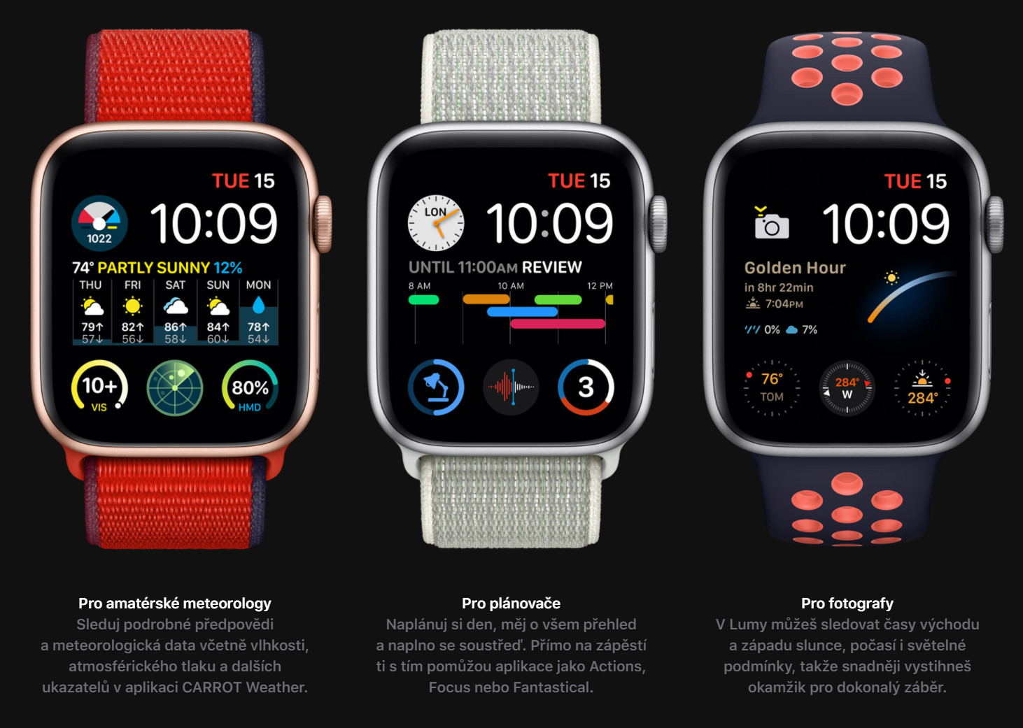 Novinkou kolekce Apple Watch Series 6 je řemínek bez jediného švu, spony nebo přezky. Vyber si ze dvou materiálů a devíti různých velikostí, aby ti přesně sedl.