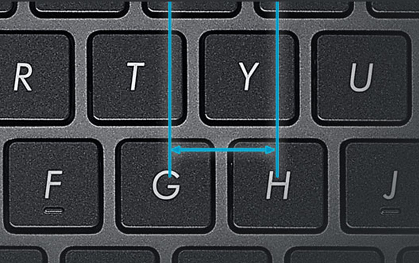 Plnohodnotný rozměr kláves 19,05mm nabízí nejpohodlnější rozteč pro psaní mezi každým prstem. Nezapomínáme ani na prohlubeň kláves s průměrem 0,15 mm, který pohladí každý prst, ani na zdvih kláves 1,5 mm, který zaručí citlivé a přesné psaní.