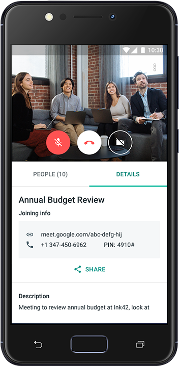 • Propojení aplikace Hangouts Meet s Google Kalendářem pro snadné připojení ke konferenci jediným kliknutím.