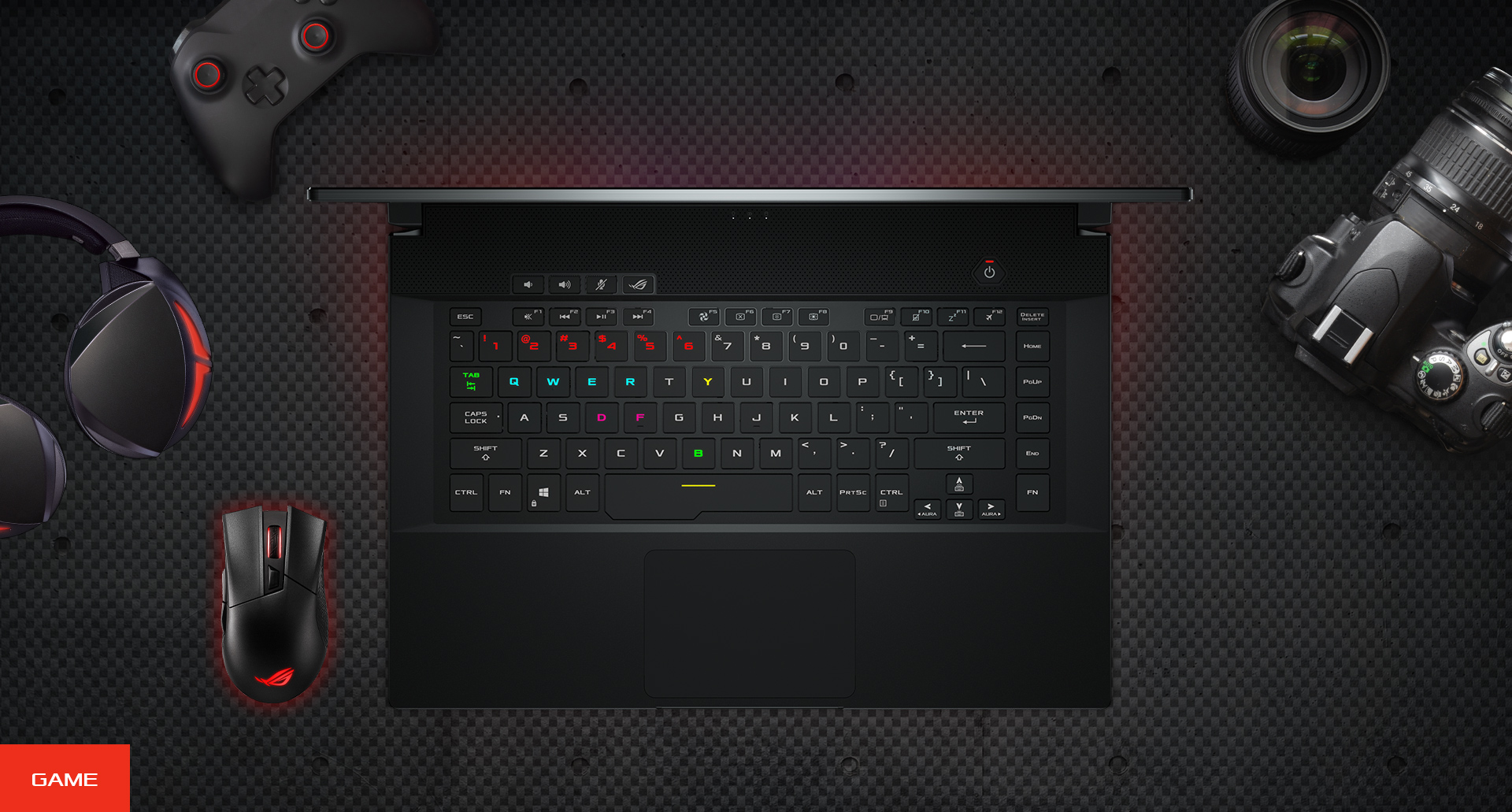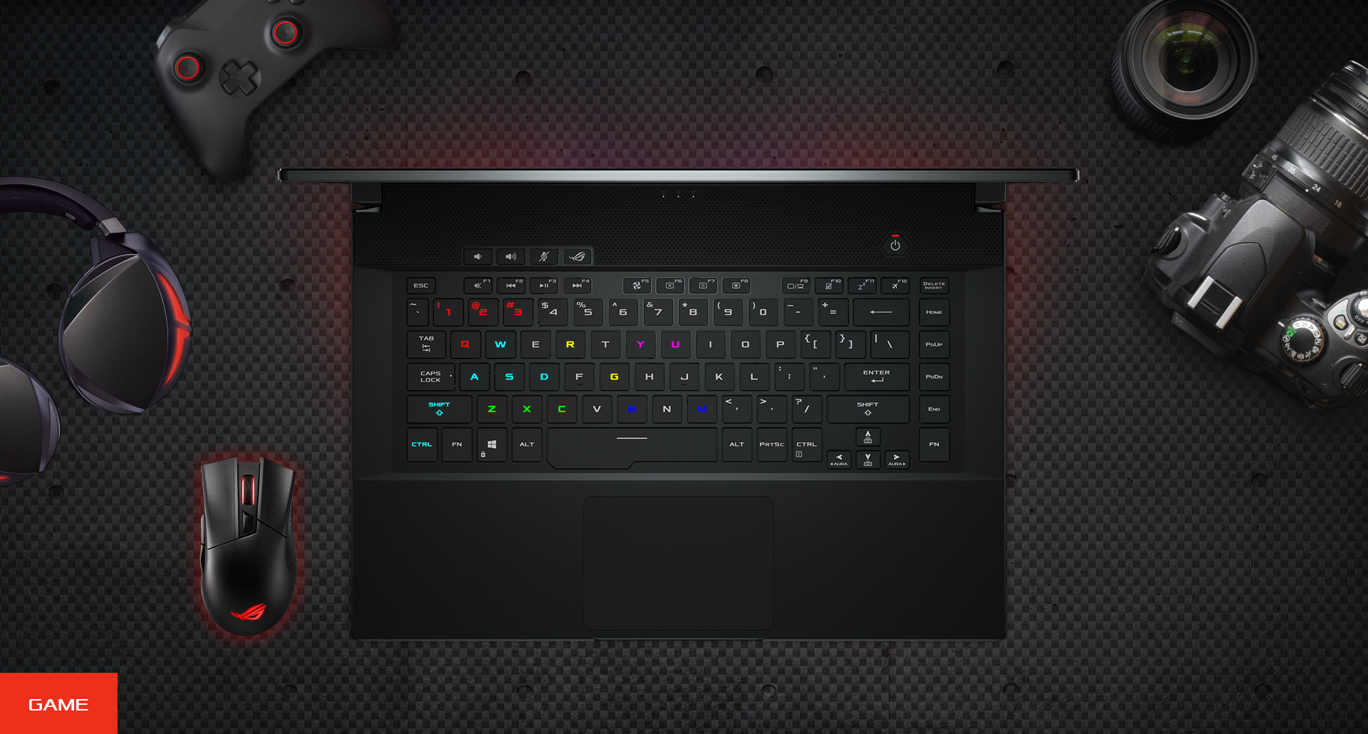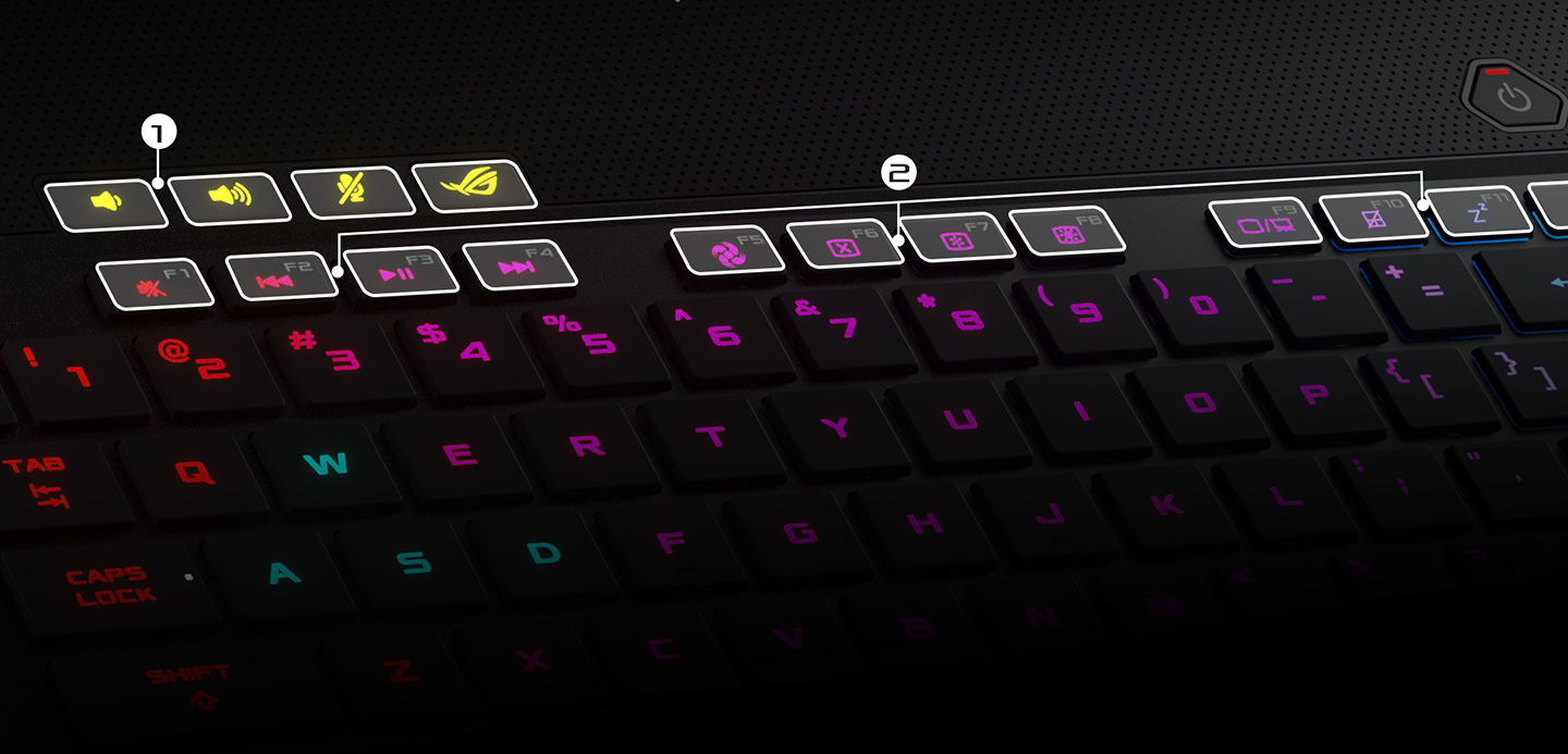 Klávesnice ve stylu stolního počítače, navržená pro přesné zadávání disponuje mezerami mezi funkčními klávesami pro intuitivní identifikaci, vyhrazené klávesové zkratky pro snadné důležité příkazy a N-rollover pro přesné zaznamenávání současných stisků. Přizpůsobení RGB osvětlení jednotlivých kláves je vynikající pro zvýraznění kritických kláves pro různé hry* a klávesové zkratky specifické pro pracovní postupy, které šetří čas. Funkce Aura Sync vám umožňuje koordinovat barvy a vizuální efekty napříč kompatibilními zařízeními, aby vaše herní prostředí bylo skutečně dle vašeho stylu.