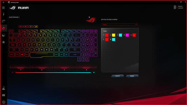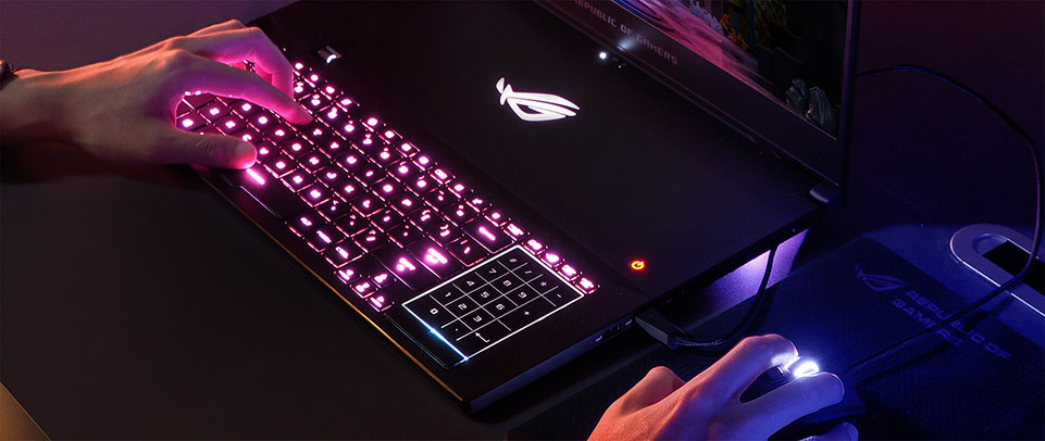 Předsunutá pozice klávesnice a rozložení desktopového typu snižuje povrchové teploty, takže můžete po celé hodiny hrát v pohodlí. Přizpůsobte podsvícení RGB pro každou klávesu zvlášť pro různé hry a pracovní postupy a pomocí programu Aura Sync přizpůsobte barvy a efekty s kompatibilními periferiemi. Osvětlení najdeme i na jedinečném kolečku pro úpravu hlasitosti, které je umístěné pro praktické a rychlé nastavení, a podsvícené numerické klávesnici, která lze zobrazit na touchpadu.