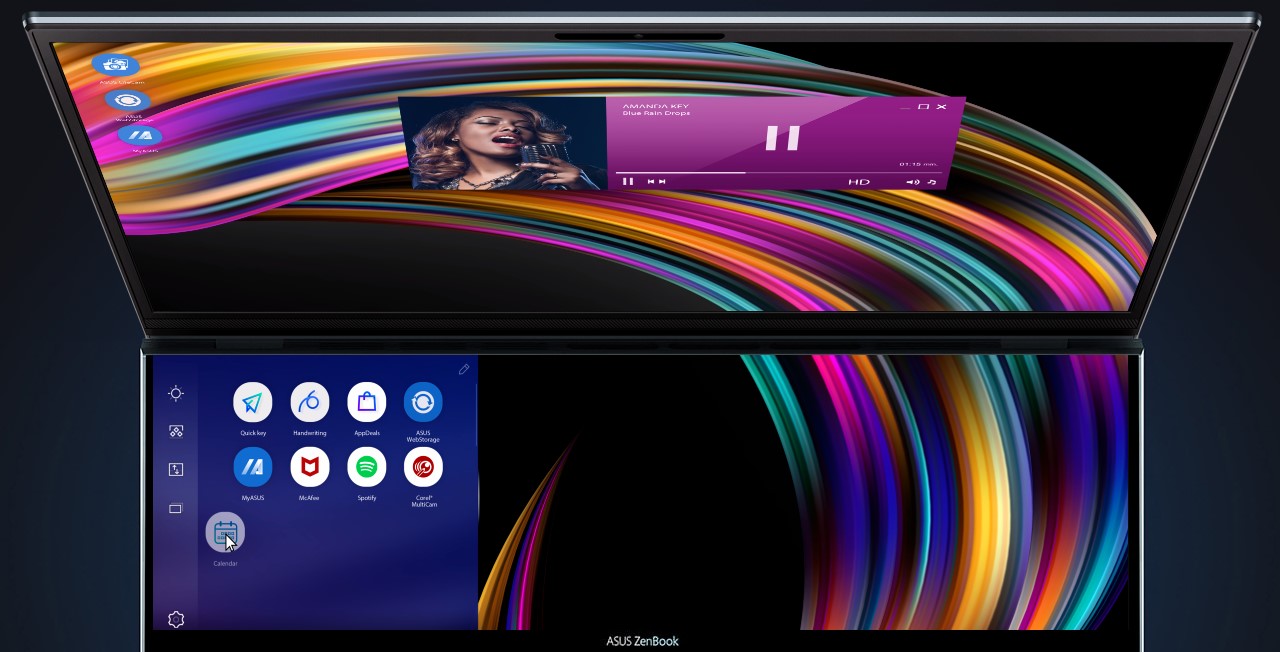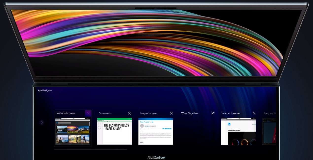 ZenBook Duo může být vybaven výkonným procesorem až Intel ® Core™ i7. Díky svým mnoha jádrům dokáže ZenBook Duo snadno zpracovat všechny aplikace na hlavní obrazovce i ScreenPad™ Plus, což zajišťuje super plynulý pracovní postup napříč obrazovkami.