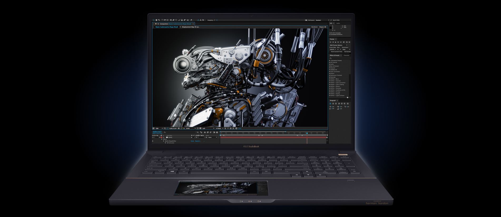 Díky výběru z výkonných procesorů Intel® Core™ a až 128GB ECC paměti dává ProArt StudioBook Pro X více než dostatečný výkon pro simulace v reálném čase, grafické vykreslování a interaktivní aplikace.