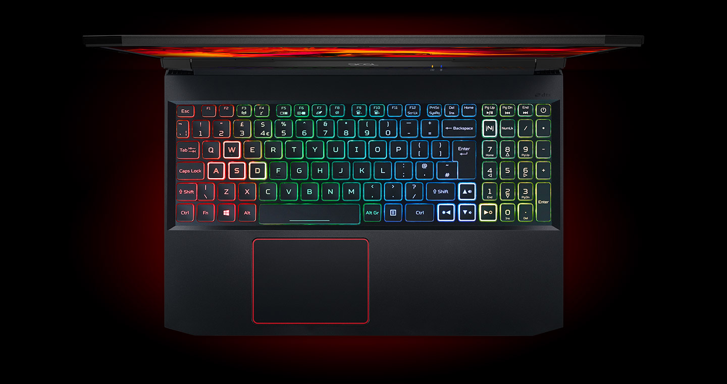 Trochu si to ozvláštněte se čtyřzónovou klávesnicí RGB a získejte možnost ovládat vnitřní procesy notebooku pomocí speciální klávesy NitroSense Key. Klávesy WASD a šipky jsou rovněž podsvícené, takže jsou lépe vidět, a díky zdvihu kláves pouhých 1,6 mm je jejich odezva prakticky okamžitá.