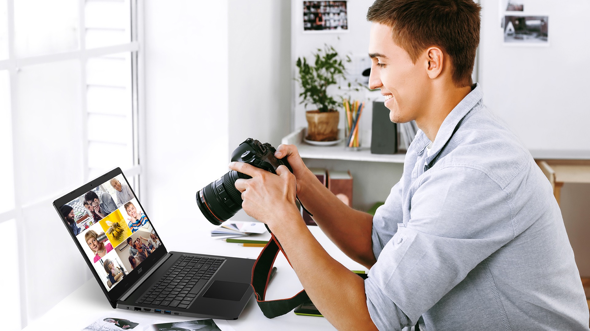 Úzký rámeček nabízí víc prostoru pro úžasný obraz. Zásluhou 15,6" displeje FHD s technologiemi IPS a Acer Color Intelligence™ ožijí syté, věrné barvy. A technologie Acer BlueLightShield™ ochrání vaše oči při dlouhodobém používání.