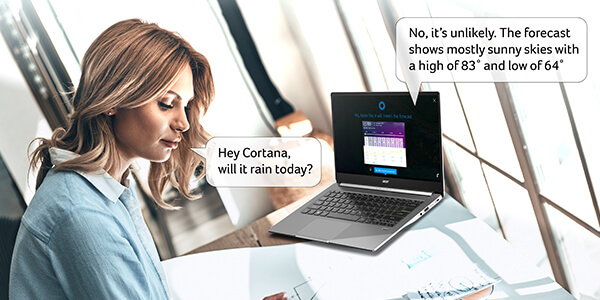 K zařízení Swift 3 se můžete přihlašovat rychleji a bezpečněji i bez používání hesla. A díky Cortaně ho můžete využít i jako osobního asistenta, který vám poskytne odpověď na celou řadu otázek.