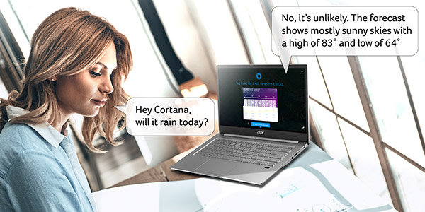 K zařízení Swift 3 se můžete přihlašovat rychleji a bezpečněji i bez používání hesla. A díky Cortaně ho můžete využít i jako osobního asistenta, který vám poskytne odpověď na celou řadu otázek.