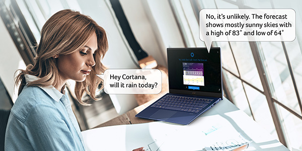 K zařízení Swift 5 se můžete přihlašovat rychleji a bezpečněji i bez používání hesla. A díky Cortaně ho můžete využít i jako osobního asistenta, který vám poskytne odpověď na celou řadu otázek.