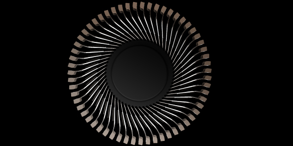 Křidélka podél horní a spodní hrany ventilátoru a zakřivená ploutev podél vnitřní lopatky ještě více snižují víření.