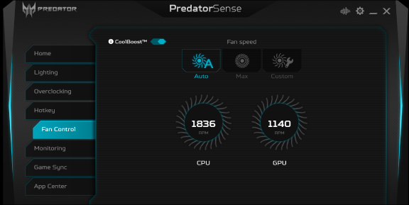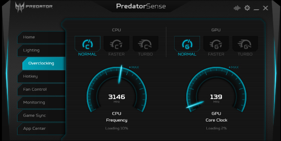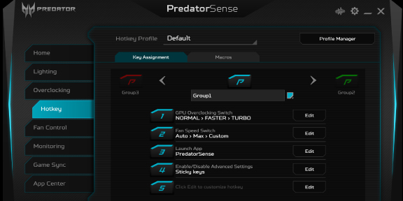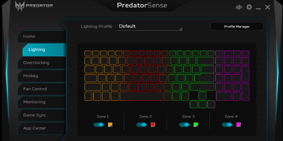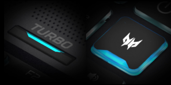 Přizpůsobená 3zónová RGB klávesnice využívá font Predator, má průhledné konkávní klávesy pro WASD a má dvě integrální klávesy pro Turbo a PredatorSense™. Po klepnutí na Turbo dojde k okamžitému přetaktování. Obslužnou aplikaci otevřete klepnutím na PredatorSense™.
