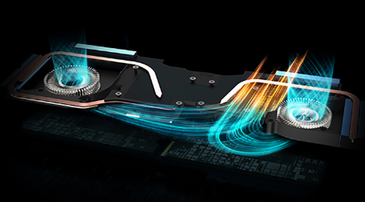 Po odpojení a vysunutí klávesnice HyperDrift budou naše 3D ventilátory AeroBlade™ 4. generace nasávat vzduch přímo prostřednictvím horních ventilačních otvorů. Jsou rychlé, výkonné a poskytují jeden z největších průtoků vzduchu, jakého se u notebooků podařilo dosáhnout, díky čemuž zajišťují nezbytné chlazení ostatním chladicím komponentám.