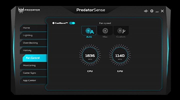 Aplikace PredatorSense™ je okamžitě k dispozici prostřednictvím dedikované klávesy, a uživatelé tak mohou v aplikaci upravit nastavení nebo přetaktovat procesor jedním stisknutím klávesy Turbo. Využijte dedikované nastavitelné klávesové zkratky a přizpůsobte si systém podle vlastních představ a potřeb.
