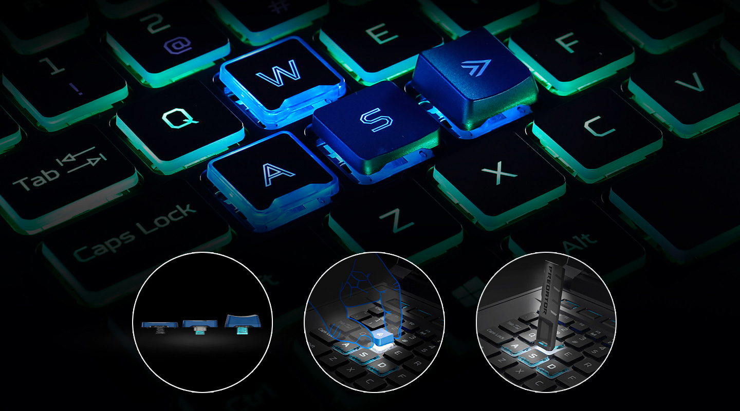Vysuňte klávesnici HyperDrift a otevře se vám cesta k většímu výkonu při současném zajištění vyššího přívodu vzduchu naší speciální technologií chlazení. Až se rozsvítí podsvícení RGB jednotlivých kláves, sledujte jedinečné klávesy WASD, které změní způsob, jak hrajete.