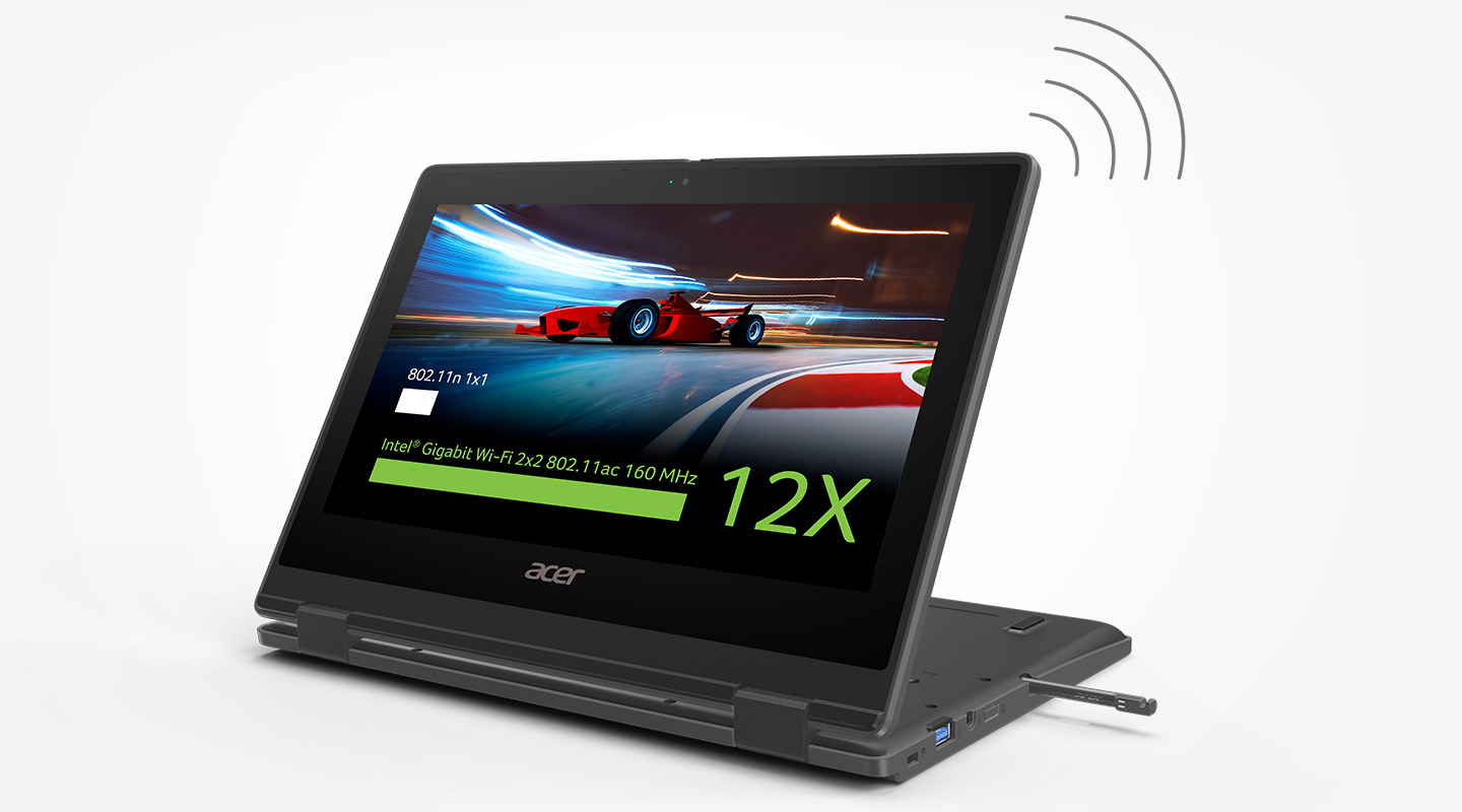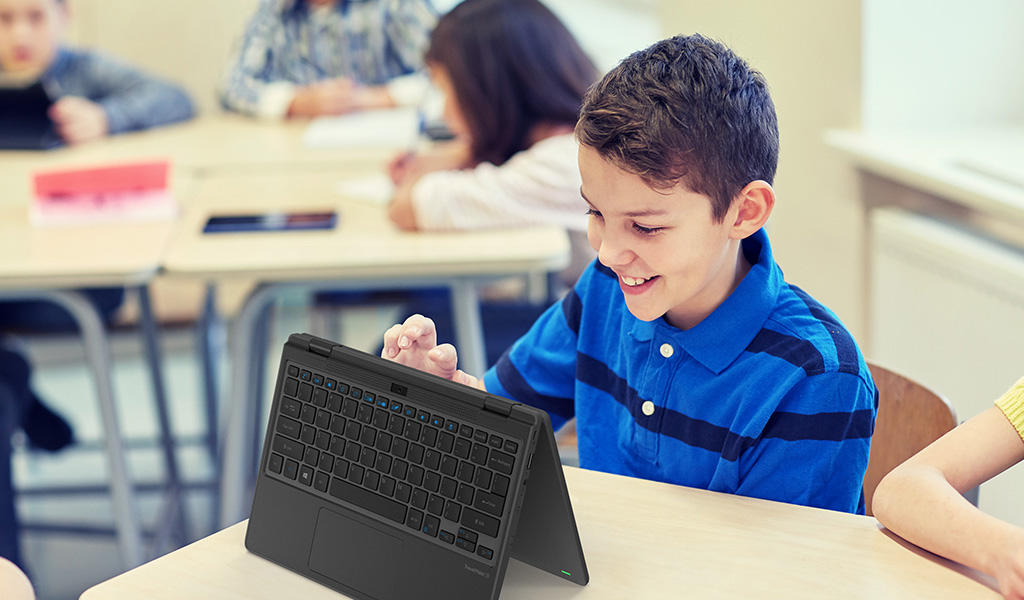 Přizpůsobitelná konstrukce notebooku, která umožňuje použití v režimech tabletu, displeje a stanu, zajistí, že studenti budou moci spolupracovat při řešení mnoha situací. Volitelné příslušenství, jako je připojitelné pero Wacom AES a ven směřující 5megapixelová kamera s HDR, vylepšuje spolupráci studentů a umožňuje flexibilnější výuku.