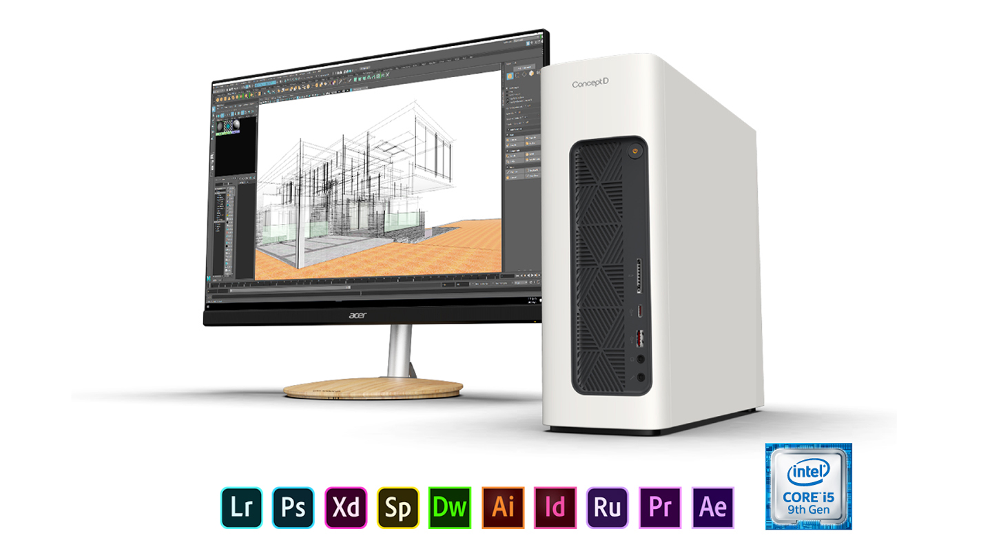 Model ConceptD 100 nabízí dostatečný výkon pro práci ve 2D a lehké 3D modelování v prostředí CAD. Je vybaven nejnovějším procesorem Intel® Core™ i5 9. generace, který umožňuje bezproblémové provádění více úloh najednou a zajišťuje rychlejší a stabilnější chod aplikací a projektů.