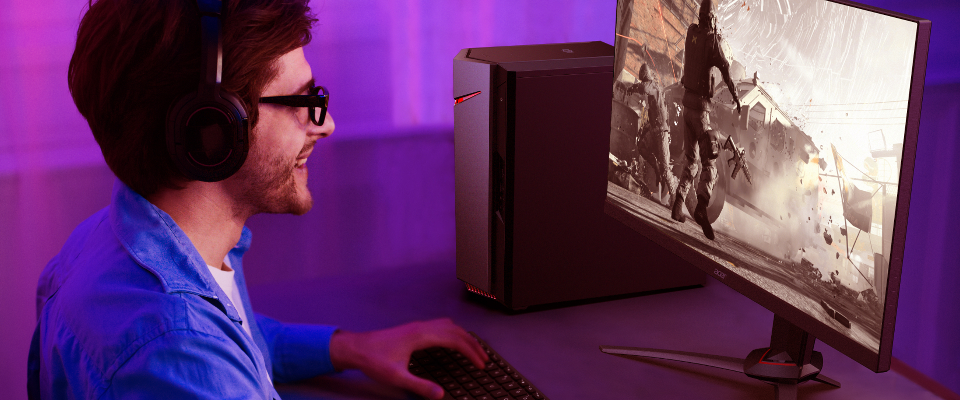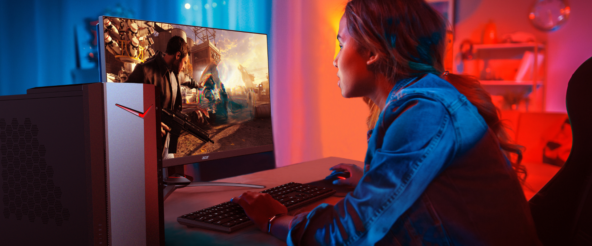 Stolní počítač Nitro 50 přináší díky procesoru Intel® Core™ 10. generace a grafice GeForce® silný výkon zajišťující hraní bez trhání a plynulé úkoly náročné na grafiku.