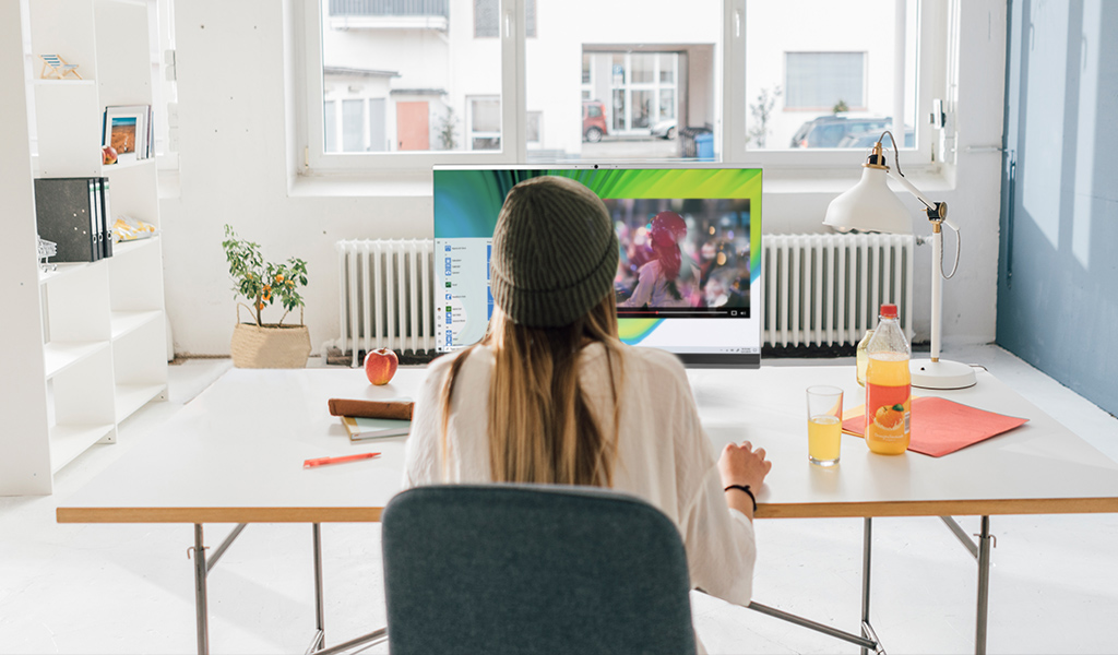 Nezáleží na tom, kam ho doma umístíte – tento elegantní počítač „vše v jednom“ se hodí kamkoli. Praktická spona na stojanu usnadňuje správu kabelů a mimořádně tenké provedení zabere méně prostoru na vašem stole. Upevněte počítač pomocí držáku VESA a uvolněte ještě více prostoru.
