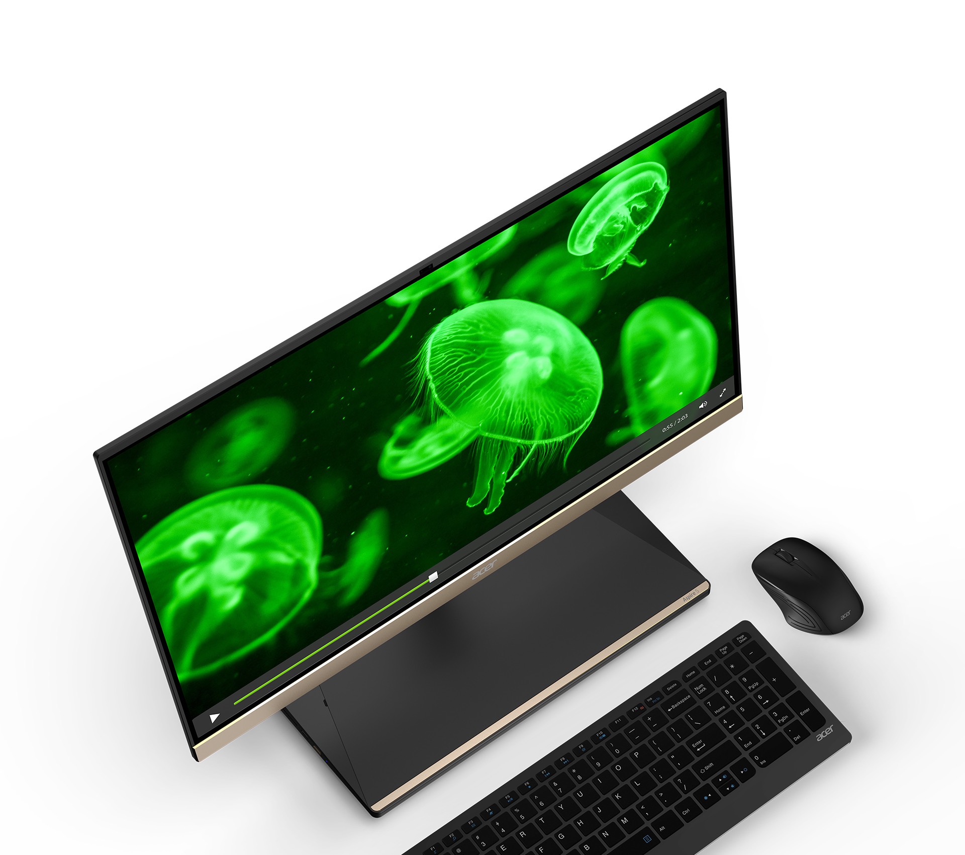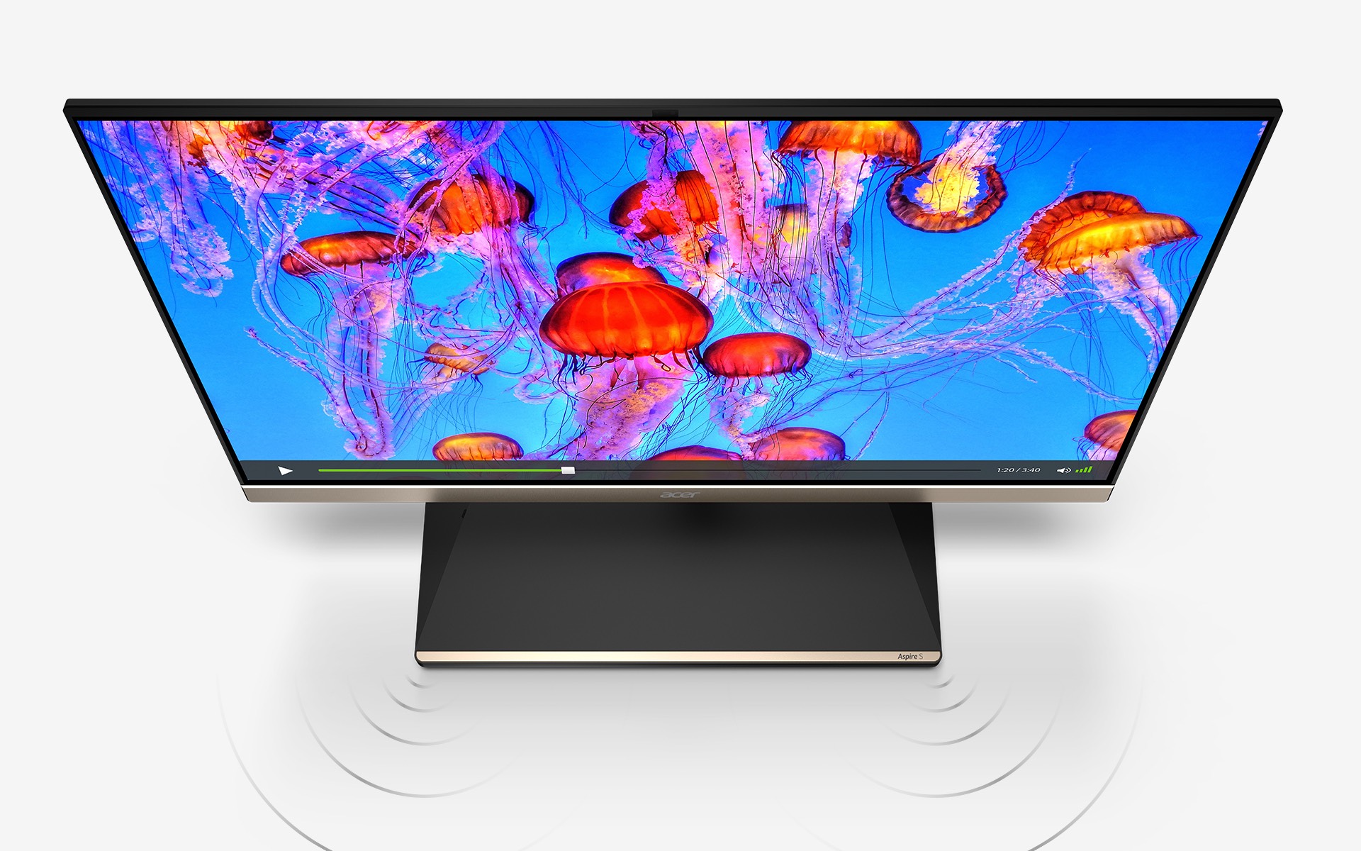 Zdůrazněte čistotu zvuku díky integrovanému subwooferu a technologiím Acer TrueHarmony™ a Dolby Audio™ Premium.
