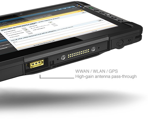 Pro nasazení vozidel může být model T800 konfigurován pomocí portů tři průchozí antény, která umožňují současně připojit vysoce náročné antény GPS, WWAN a WLAN.