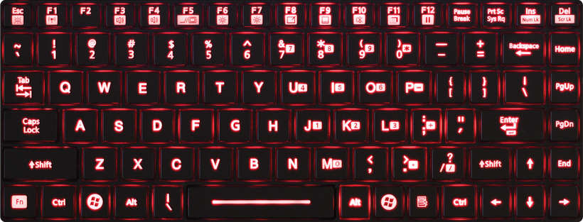 Klávesnice B300 je osvětlena červeným podsvícením, které umožňuje zadávat znaky bez siluet. Navíc červená záře redukuje napětí a únavu očí.