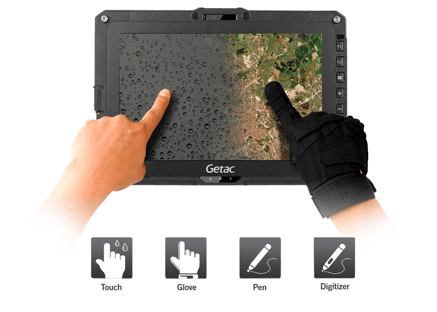 Odolnost proti pádu a teplotní tolerance, obrazovka LumiBond® zajišťuje použitelnost ve všech podmínkách. Jas 1000 nitů činí displej čitelným i na slunci, zatímco jeho schopnost pracovat v dešti a rozpoznávání dotyku v rukavicích zaručují viditelnost a produktivitu i v těch nejextrémnějších podmínkách.