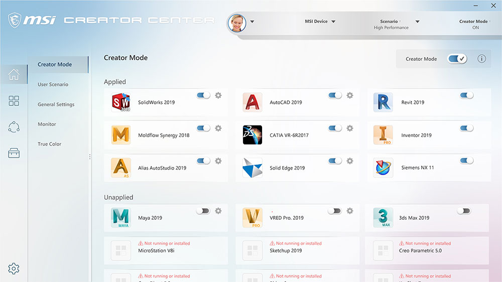 Creator Center posouvá optimalizaci na další úroveň pomocí snadno nastavitelných systémových režimů a zdrojů pro širokou škálu scénářů a potřeb.