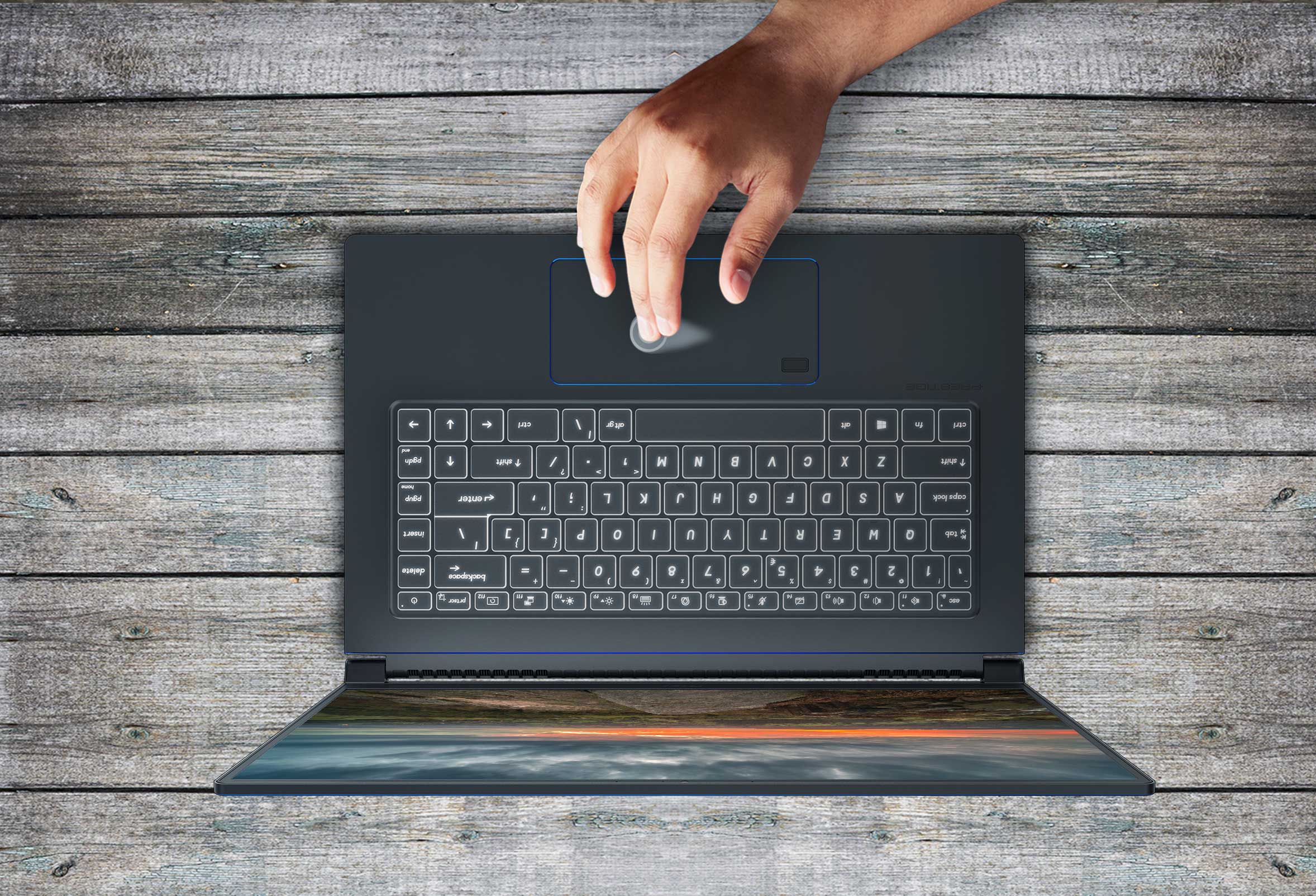 Prestige15 přichází s extra velkým touchpadem pro všechna vaše gesta za požití více prstů . Je citlivější, přesnější a hedvábně hladší na dotek.