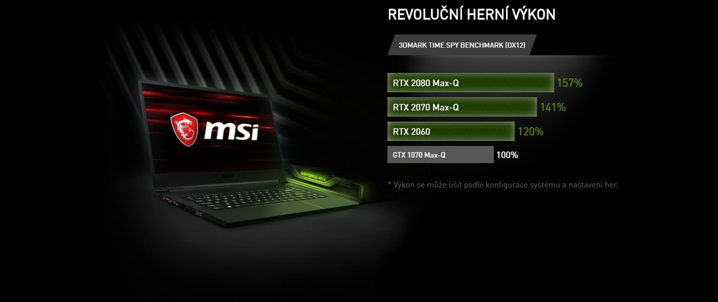 NVIDIA GeForce RTX přináší špičkový zážitek z hraní na notebooku. Tyto elegantní a výkonné stroje jsou poháněny novou architekturou NVIDIA Turing a revoluční platformou RTX. Grafika RTX spojuje sledování paprsku v reálném čase, umělou inteligenci a programovatelné stínování.