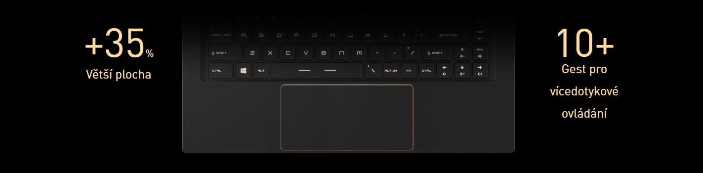 Prémiový skleněný touchpad má mimořádně hladký povrch a podporuje vícedotykové ovládání.