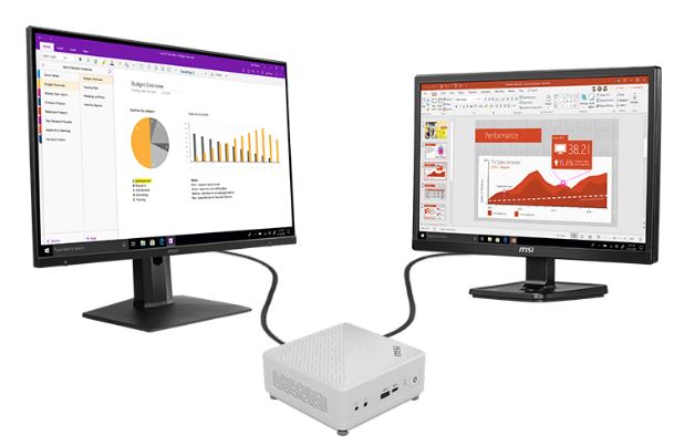 Sledujete spoustu webových stránek a aplikací na malém monitoru? S porty HDMI™ a DP podporuje MSI Cubi 5 připojení dvou monitorů, takže můžete pracovat efektivněji a sledovat více věcí současně.