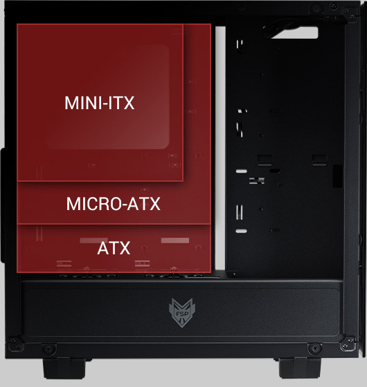 Prostorný interiér v CMT510 vyhovuje všem standardním základním deskám (ATX, Micro ATX, Mini-ITX) pro vaše herní potřeby.