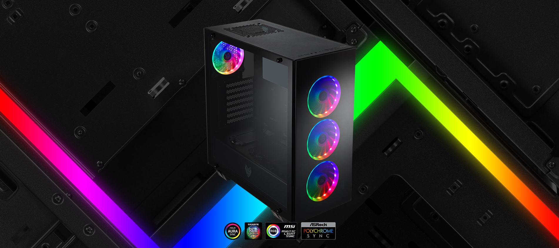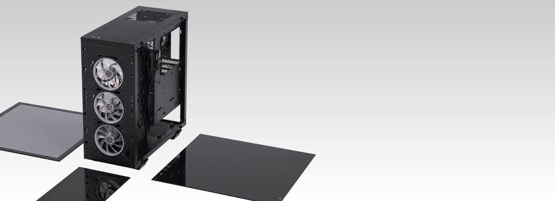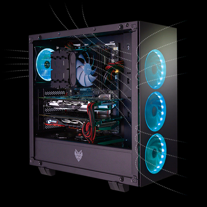 Předinstalované tři 120 mm ARGB LED ventilátory vpředu a jeden 120 mm ARGB LED ventilátor v zadní části, které vám zajistí skvělé odvádění tepla.