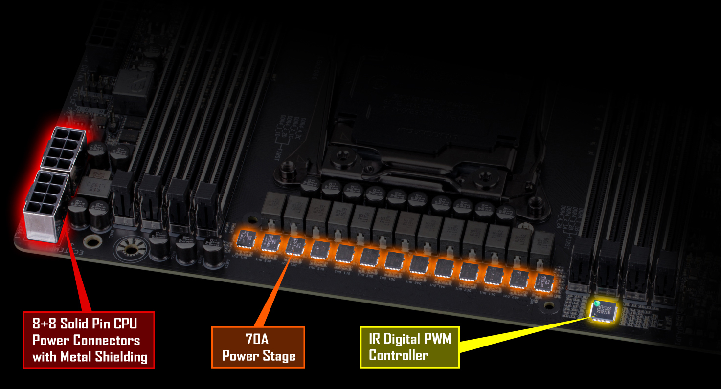 K využití plného potenciálu nových 18jádrových procesorů Intel vyžaduje základní deska nejlepší návrh napájení procesoru. Díky nejkvalitnějším komponentům a schopnosti konstrukce společnosti GIGABYTE při výzkumu a vývoji a nikdy nepřestává prahnout po dosažení nejvyššího možného přetaktování. To činí základní desku X299X DESIGNARE 10G na trhu skutečně bezkonkurenční.