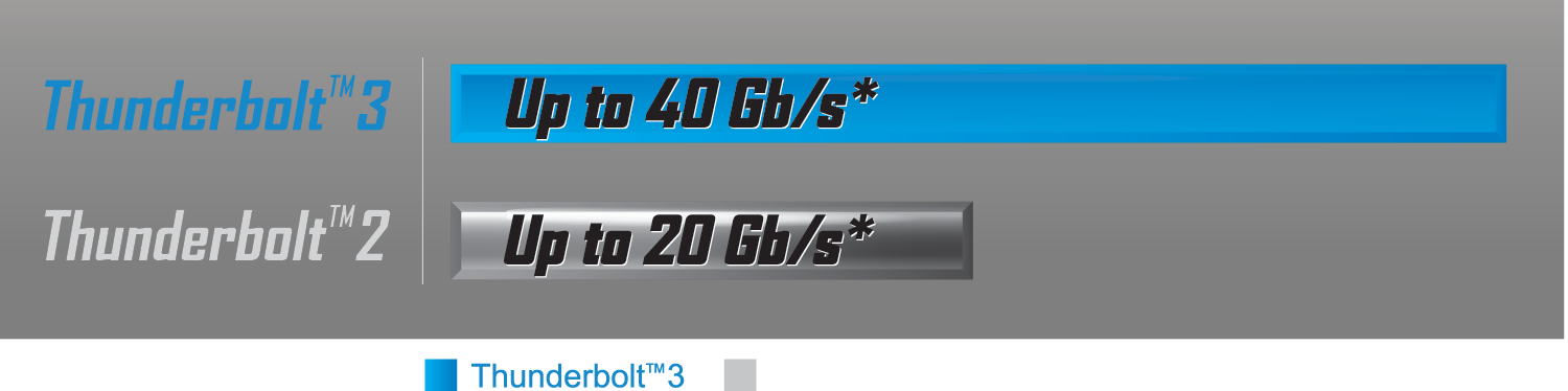 Nový protokol Thunderbolt™ 3, který je k dispozici u dvou konektorů USB-C™ na zadní straně vstupů/výstupů základní desky GIGABYTE X299X DESIGNARE 10G, zajišťuje vlastní ovladač Thunderbolt™ 3 a přináší bezprecedentní šířku pásma na jeden kabel až 40 Gb/s - dvakrát více než předchozí generace Thunderboltu! Toto neuvěřitelné zvýšení šířky pásma je také doprovázeno podporou různých protokolů, jako jsou DisplayPort 1.2 a USB 3.2, který je zpětně kompatibilní s USB 3.0 a USB 2.0, což otevírá svět nových možností.