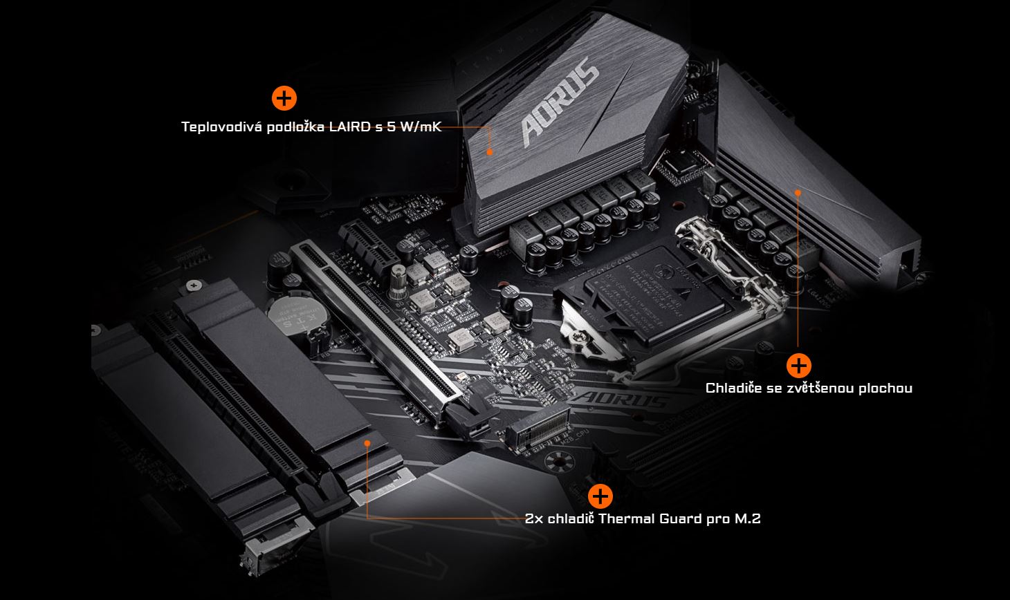 Z490 AORUS ELITE AC využívá vysoce výkonný tepelný design s našroubovanými chladiči a silnou tepelnou podložkou, které poskytují maximální výkon chlazení MOSFET pro nadšence, přetaktovače a hráče.