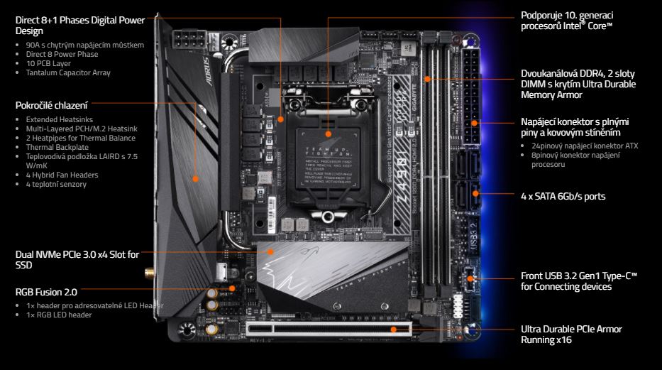 Pro plnou podporu nejnovějších desetijádrových procesorů 10. generace je Z490I AORUS ULTRA vybavena dokonalým řešením napájení s požadovanými vlastnostmi: přímé, digitální a vícefázové. Po nesčetných experimentech a testech představuje GIGABYTE bezkonkurenční Z490I AORUS ULTRA pro nadšence a hráče.