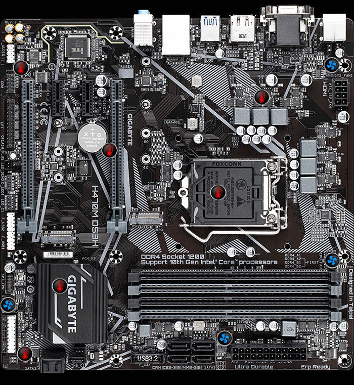 Základní desky GIGABYTE používají integrované obvody s až třikrát vyššími úrovněmi ochrany vůči ESD v porovnání s tradičními integrovanými obvody. To pomáhá lépe chránit základní desku a její součásti před potenciálními poškozením způsobenými statickou elektřinou. Základní desky GIGABYTE jsou vybaveny speciálními integrovanými obvody přepěťové ochrany, které chrání základní desku a váš počítač před jakýmkoli nárůstem energie, jaké mohou nastat. To pomáhá zajistit, že se počítač vypořádá s případnými nepravidelnými a nekonzistentními přísuny energie.
