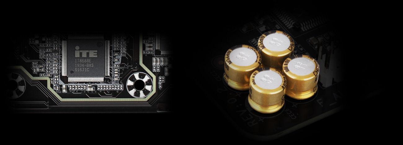 Základní desky GIGABYTE používají špičkové audiokondenzátory Nichicon. Tyto vysoce kvalitní kondenzátory přináší nejkvalitnější zvuk s nejjemnějším rozlišením a nejrealističtější zvukové efekty pro hráče.