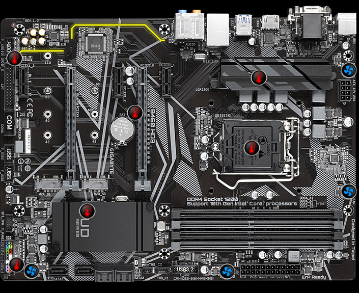 Základní desky GIGABYTE používají integrované obvody s až třikrát vyššími úrovněmi ochrany vůči ESD v porovnání s tradičními integrovanými obvody. To pomáhá lépe chránit základní desku a její součásti před potenciálními poškozením způsobenými statickou elektřinou. Základní desky GIGABYTE jsou vybaveny speciálními integrovanými obvody přepěťové ochrany, které chrání základní desku a váš počítač před jakýmkoli nárůstem energie, jaké mohou nastat. To pomáhá zajistit, že se počítač vypořádá s případnými nepravidelnými a nekonzistentními přísuny energie.