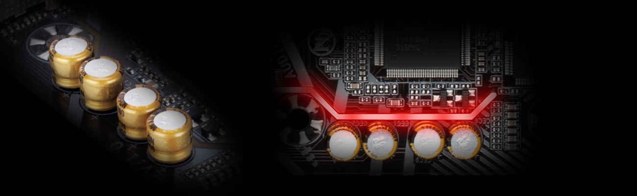 Základní desky GIGABYTE používají špičkové audiokondenzátory Nichicon. Tyto vysoce kvalitní kondenzátory přináší nejkvalitnější zvuk s nejjemnějším rozlišením a nejrealističtější zvukové efekty pro hráče.