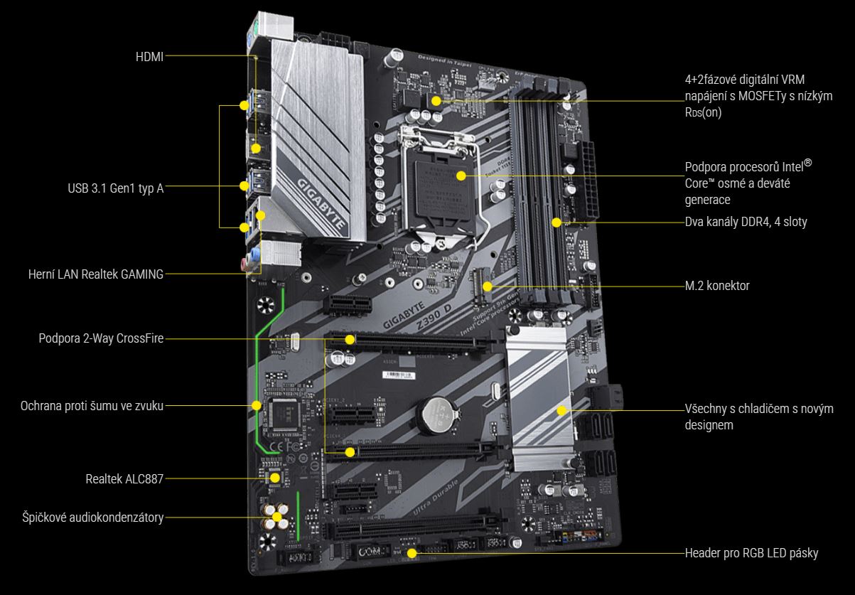 Základní desky GIGABYTE používají špičkové audiokondenzátory Nichicon. Tyto vysoce kvalitní kondenzátory přináší nejkvalitnější zvuk s nejjemnějším rozlišením a nejrealističtější zvukové efekty pro hráče.