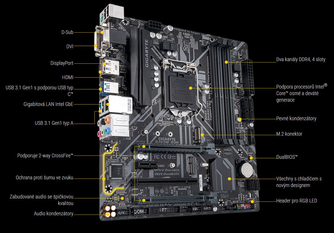 Základní desky GIGABYTE používají špičkové audiokondenzátory Nichicon. Tyto vysoce kvalitní kondenzátory přináší nejkvalitnější zvuk s nejjemnějším rozlišením a nejrealističtější zvukové efekty pro hráče.