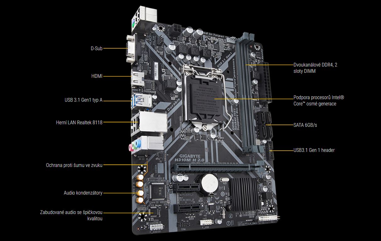 Základní desky GIGABYTE jsou opatřeny ochranou proti šumu, která v podstatě odděluje citlivé analogové zvukové součásti desky od potenciálního zdroje šumu na úrovni PCB.