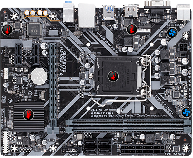 Základní desky GIGABYTE jsou vybaveny také speciálním protipřepěťovým čipem, který je chrání a pomáhá tak zajistit, aby se váš počítač vyrovnal s případnými nepravidelnými elektrickými špičkami.